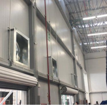 Suministro e instalación de sistema de extracción de Aire marca Greenheck, conformado por 39 extractores axial de pared y 10 extractores tipo línea de diferentes capacidades y modelos, con recambio de aire cada 40 minutos.